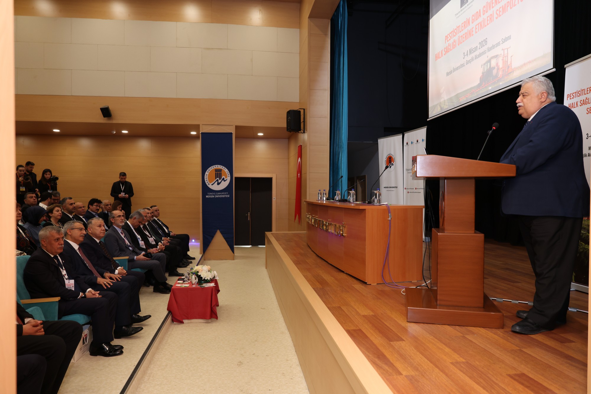 Sempozyuma TÜBA Başkanı Prof. Dr. Muzaffer Şeker, Mersin 1. İdare Mahkemesi Başkanı Mahmut Taşçı, Rektörümüz Prof. Dr. Erol Yaşar, İstanbul Üniversitesi Rektörü Prof. Dr. Osman Bülent Zülfikar, Lokman Hekim Üniversitesi Rektörü Prof. Dr. Fatih Gültekin, Tarım ve Orman Bakanlığı Gıda Kontrol Genel Müdür Yardımcısı Doç. Dr. Yunus Bayram, Rektör Yardımcılarımız Prof. Dr. Mehmet İsmail Yağcı ve Prof. Dr. Mehmet Çağrı Çetin, Dekanlarımız, Müdürlerimiz, Rektör Danışmanlarımız, Mersin İl Sağlık Müdürü Uzm. Dr. Mustafa Ekici, akademisyenlerimiz ve öğrencilerimiz katılım sağladı.