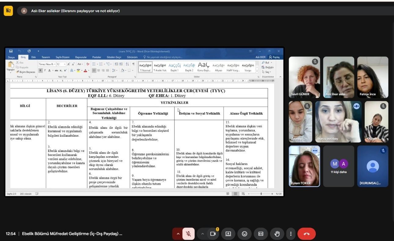 Sağlık Bilimleri Fakültesi Ebelik Bölümü, eğitim kalitesini artırmaya yönelik çalışmalar kapsamında iç ve dış paydaşların katılımıyla müfredat geliştirme toplantısı gerçekleştirdi. 6 Mart 2026 tarihinde çevrim içi olarak düzenlenen toplantıya çok sayıda iç ve dış paydaş katılım sağladı.