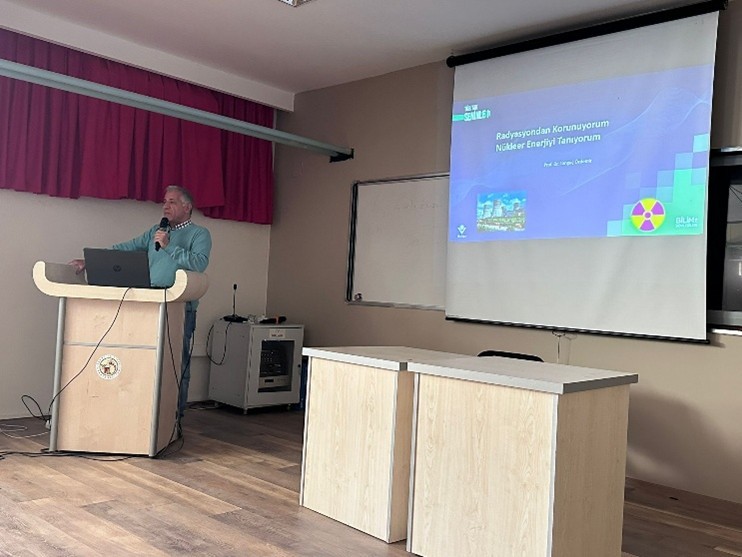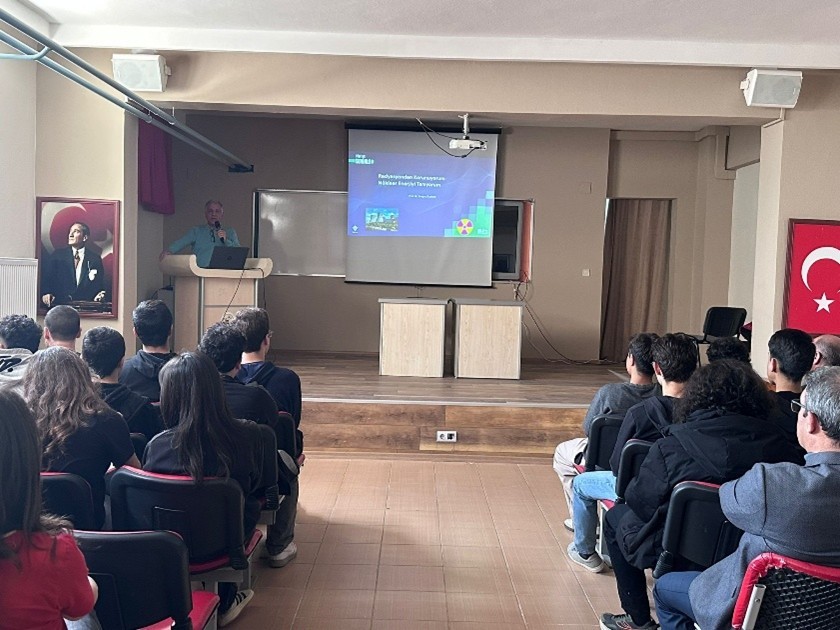 Prof. Dr. Tonguç ÖZDEMİR, radyasyonun temel prensiplerinden günlük hayattaki etkilerine kadar geniş bir çerçevede bilgilendirmelerde bulundu. Tarihsel olaylardan örneklerle konuyu somutlaştıran Özdemir, Fen Lisesi öğrencilerinin yoğun ilgi gösterdiği soru-cevap bölümünde nükleer teknolojiye dair merak edilenleri cevaplayarak öğrencileri aydınlattı.